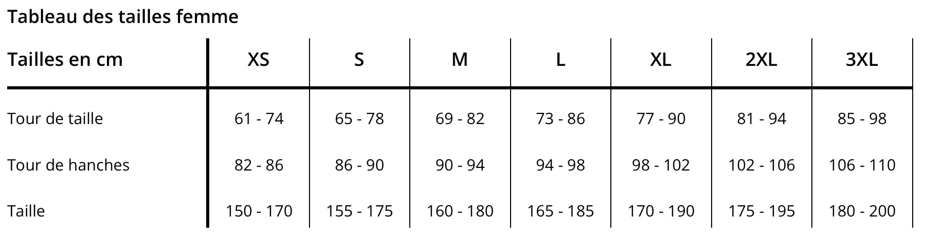 ⚠️Attention : Selon le tableau guide des tailles ci-dessus, nous conseillons de sélectionner une taille au-dessus pour un ajustement optimal et un confort maximal.